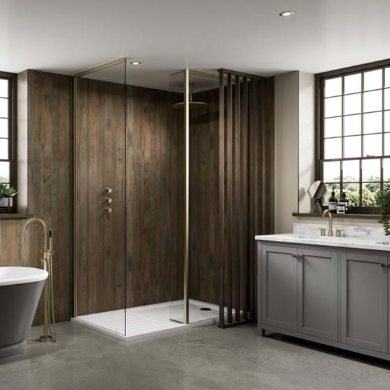 When it comes to renovating your bathroom, you can choose from a great variety of colours, textures, and patterns. Don’t be shy – designs which would otherwise be overwhelming make great accent walls. Start by choosing the texture and finish. Should the wall be matte or gloss to reflect the light? Do you have a specific natural effect in mind? Make a statement with stone or slate effects such as our Cappuccino Stone or a stunning wooden feature wall. Our Salvaged Planked Elm shower wall panel feels and looks like real wood but is fully waterproof and easy to clean and maintain.
