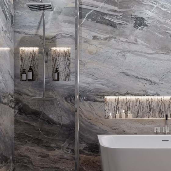 Curated by interior designer, Linda Barker, and exclusive to Multipanel, this designer collection is inspired by materials from the natural world with marble, granite and wood finishes that look and feel like the real thing.