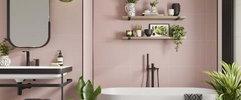 Go retro! Our panels look and feel like pink bathroom tiles, without the hassle of grout. Visualise your dream space with our bathroom planner.