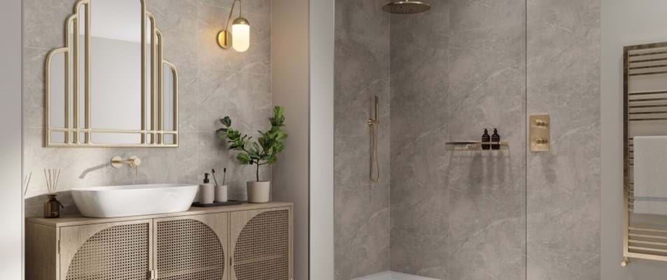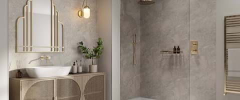 Our stone effect bathroom wall panels offer a fast, grout free alternative to traditional ceramic tiles.