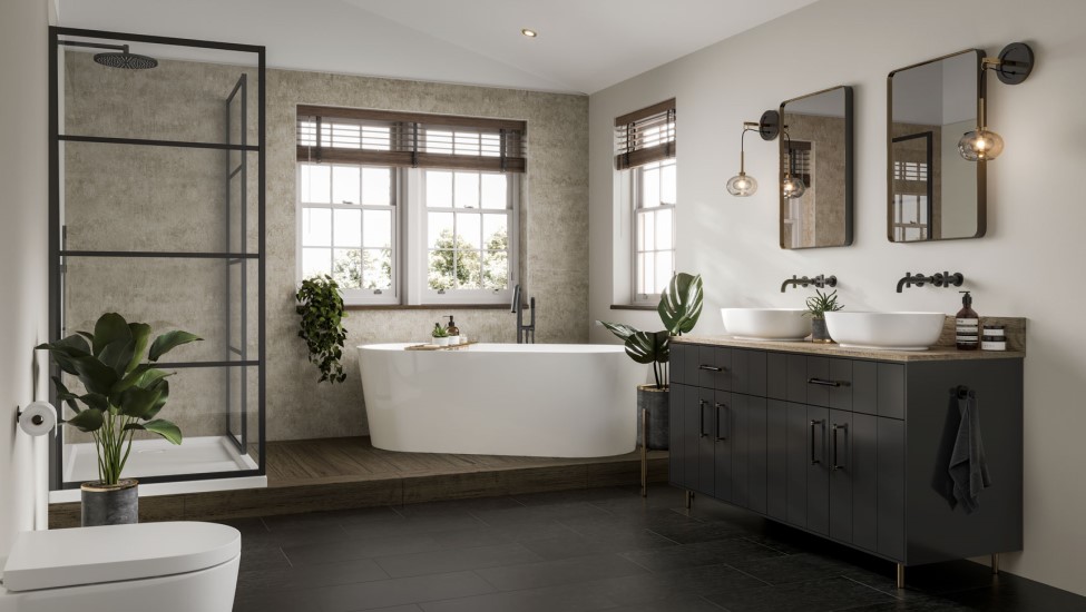 Our collection of concrete effect bathroom wall panels are highly textured decors that have the look and feel of real concrete but without the need for grout. Finish off with some industrial accessories to create your urban oasis.