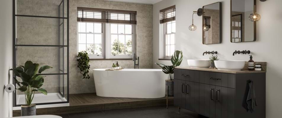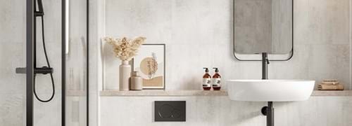 Our collection of concrete effect bathroom wall panels are highly textured decors that have the look and feel of real concrete but without the need for grout. Finish off with some industrial accessories to create your urban oasis.