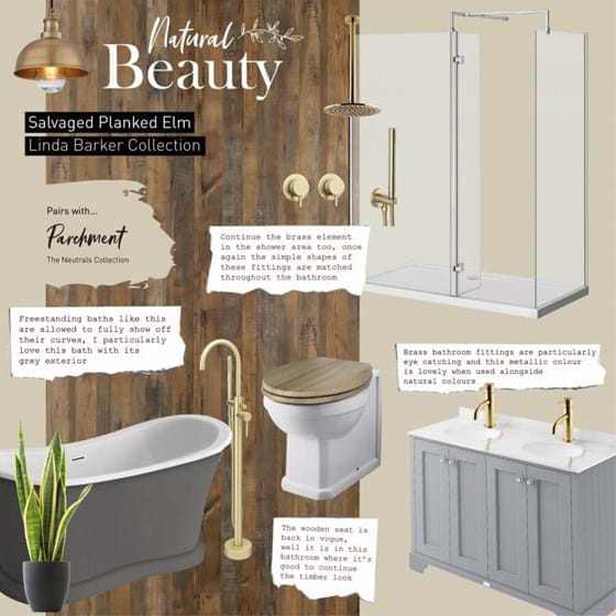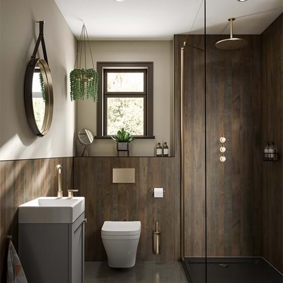 Salvaged Planked Elm is a wood effect bathroom wall panel from the Linda Barker. This softly weathered panel will transform your bathroom into a place of tranquillity by allowing you to bring this natural element indoors with 100% waterproof confidence. This panel works well with White Grey from the Pure Collection.