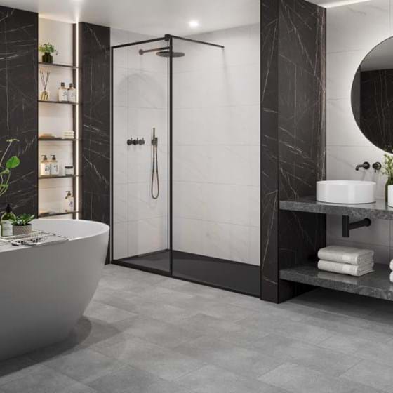Salerno tile effect vinyl flooring from the Click Flooring range. Perfect for your bathroom, shower or wet room.