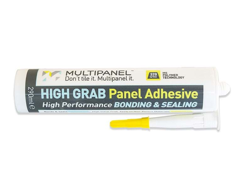 Multipanel High Grab Panel Adhesive is suitable for use on all Multipanel bathroom wall panels ranges, and most materials including non-porous surfaces.