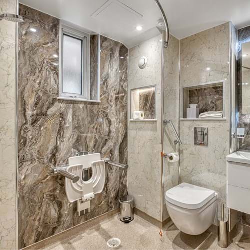 Multipanel also aligns with inclusive design principles. Combined with slip-resistant vinyl wet room floors, the bathrooms meet Lifetime Homes and accessibility standards, making them safer for residents who require extra support. By simplifying cleaning and maintenance, Multipanel panels allow staff to focus more on resident care rather than ongoing repairs or deep cleaning.